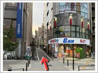 横断歩道を渡っていただいたところにあるパチンコ店GAIAさんを目印にみずほ銀行さんとの間の道を進んでください。
